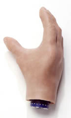 Input devices are methods of generating a signal to operate an externally powered device. (They are the in-put to the microprocessor--the brain of the prosthesis.) Electrodes pick up an electrical signal generated by your muscles. Force transducers, Linear Potentiometers, Touch Pads, and Switches translate the body's actual movement (not muscle activity) into an electrical signal that can be used similarly to that from the electrodes.