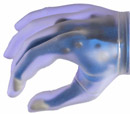 Newer designs of externally powered hands have individually moving fingers and are called "articulated hands." However, individual fingers can't be controlled separately; e.g. you can't actively point your index finger. What happens is that the fingers will start moving together and stop individually when they meet resistance. For example, to point the index finger, you would start from a fully open position. Next, you would tell the hand to close while using your other hand to hold the index finger in place. The other four fingers would curl around to form a fist, and the index finger would remain straight. Even though this seems awkward, it is still an improvement over the limited, jaw-like, pinching motion of traditional externally powered hands. When grabbing an object, articulated fingers will wrap around it. All fingers will make contact with the object and hold it more securely, as a human hand does.
